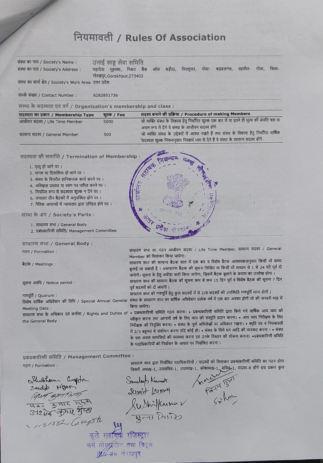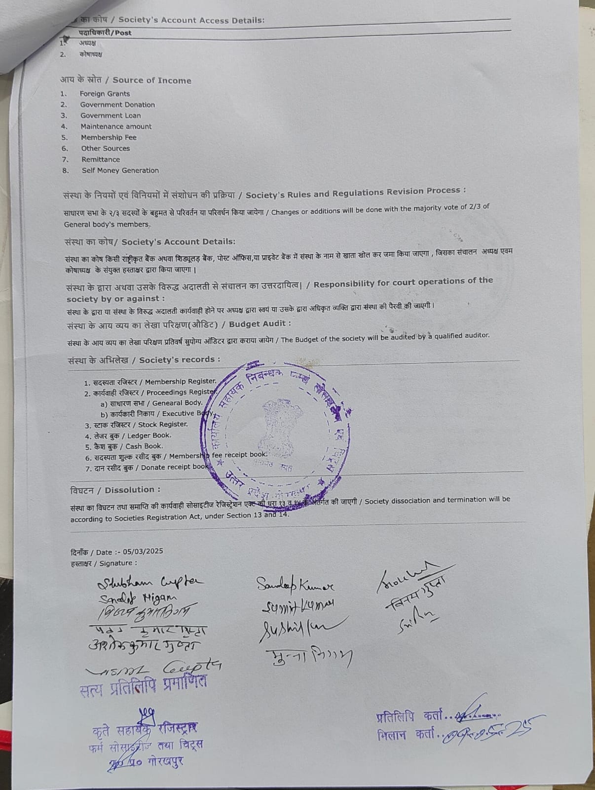 संस्था के दस्तावेज़